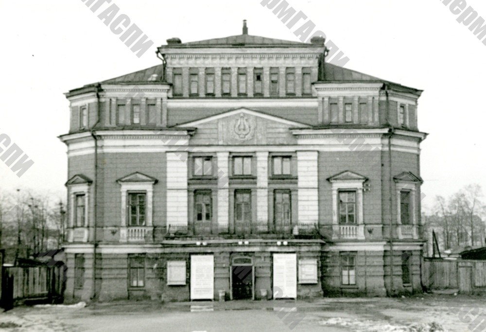 Въ конце семидесятыхъ годовъ было приступлено къ постройке каменнаго театра, который существуетъ и теперь и представляетъ на видъ довольно изящное зданіе, стоящее посреди площади, и окруженное съ трехъ сторонъ садомъ, находящимся отъ театра на небольшомъ разстояніи. Въ настоящее время, когда населеніе Перми въ сравненіи съ семидесятыми годами возросло почти втрое, театръ уже тесенъ.