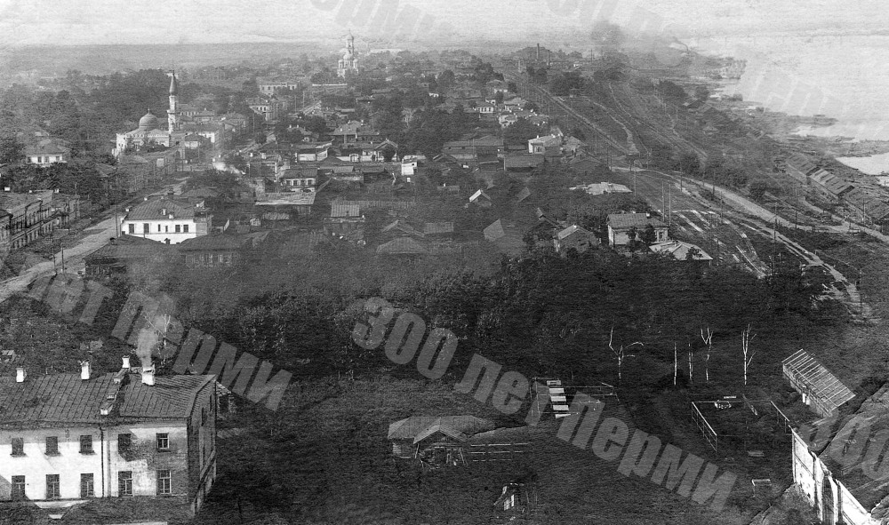 Съ юго-восточной стороны къ городу прилегаетъ несколько слободокъ: Старая, Новая, Солдатская и Михайловская. Далее пригородныя местности составляютъ деревня Данилиха, Гарюшки, Новая деревня, Курочкинъ поселокъ. Все эти селенія сплошнымъ кольцомъ окружаютъ городъ. На противоположномъ городу берегу Камы расположился Закамскій поселокъ, насчитывающій свыше 4000 жителей и составляющій часть Оханскаго уезда, Пермской губерніи!