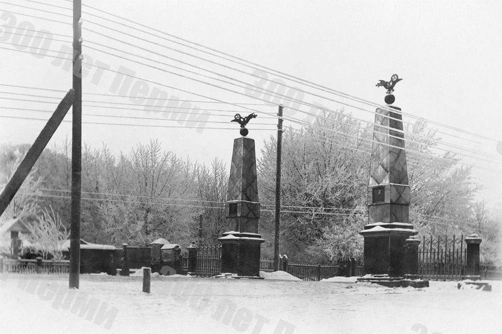Въезд в город с 1824 года со стороны Сибирского тракта проходил через Сибирскую заставу, а со стороны Казанского – Казанскую. Установленные два столба каждой заставы представляли собой сужающиеся кверху четырехгранные обелиски. На каждом обелиске красовался герб города Перми. Столбы были увенчаны двуглавыми орлами. Обелиски простояли до 30-х годов ХХ века.