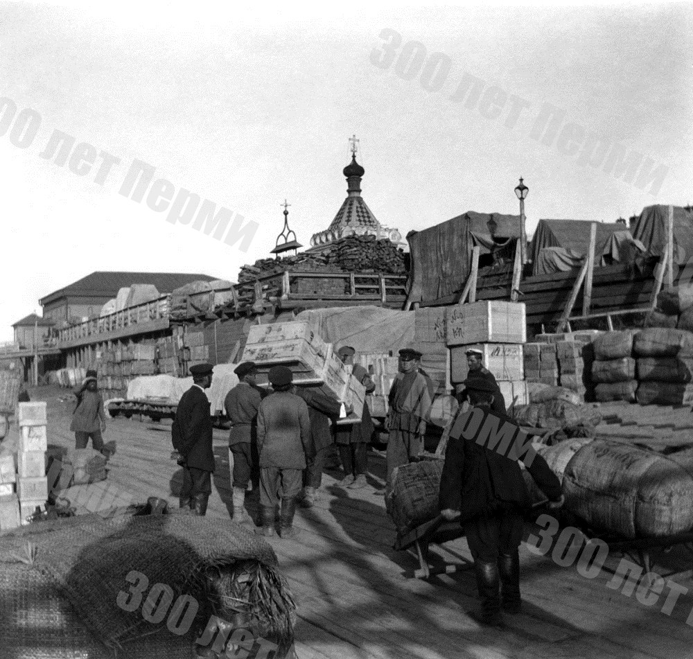 Наибольшее оживленіе въ Перми замечается съ открытіемъ навигаціи. Когда Кама сбрасываетъ свой ледяной покровъ, на берегу ея жизнь начинаетъ бить ключемъ. Приходятъ и уходятъ пароходы, нескончаемо тянутся съ кладью обозы, непрерывный рядъ крючниковъ нагружаетъ и выгружаетъ товары, извозчики подвозятъ и отвозятъ пассажировъ. Къ общему шуму примешиваются свистки паровозовъ проходящей тутъ же по берегу железной дороги. Верхоланцев В.С. Городъ Пермь, его прошлое и настоящее. г. Пермь. 1913